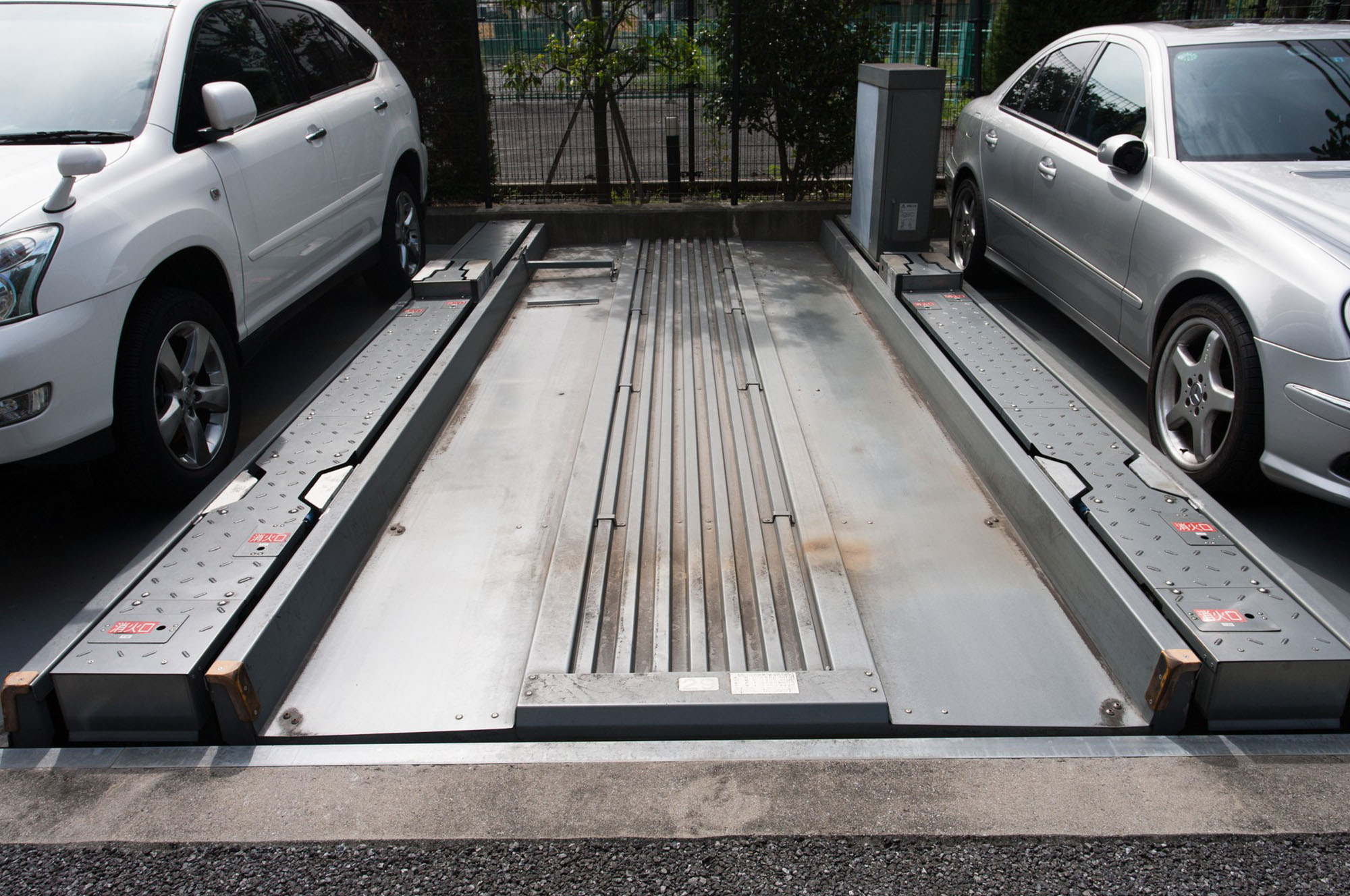 機械式駐車場のパレットとは、車を載せて移動・収納する台を指し、装置の種類によってパレットの形状、移動方式等は異なります。特に、屋根がない露天式の駐車場は、パレットが雨風にさらされるため、サビや腐食に注意が必要です。
