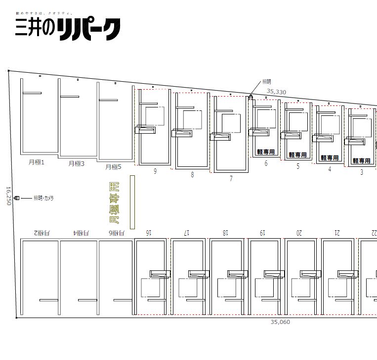 | 特記事項 | ※契約車両が改造車(純正エアロパーツ装着車を除く。)でない場合に限り、車両制限値が全高2,100mm、重量2,500kgまで緩和される場合があります。ただし、制限値緩和に起因するトラブルや本駐車場内での事故、本駐車場施設・契約車両等の破損については、当社は一切の責を負いません。 ※個人名義でのご契約の場合は、ROOMiDのご利用がご契約条件となります。ご利用には以下の費用のお支払いが必要になります。詳しくはQ&A「保証会社の利用について」をご確認ください。 ・基本保証料:36,300円(非課税、初回のみお支払い) ・月次保証料:360円(非課税、毎月の使用料支払日にお支払い) ※駐車場の除雪対応等は行なっておりません。予めご了承ください。 |