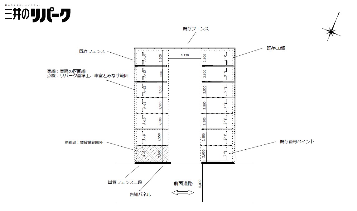 | 特記事項 | ※契約車両が改造車(純正エアロパーツ装着車を除く。)でない場合に限り、車両制限値が全高2,100mm、重量2,500kgまで緩和される場合があります。 ただし、制限値緩和に起因するトラブルや本駐車場内での事故、本駐車場施設・契約車両等の破損については、当社は一切の責を負いません。 ※個人名義でのご契約の場合は、ROOMiDのご利用がご契約条件となります。ご利用には以下の費用のお支払いが必要になります。詳しくはQ&A「保証会社の利用について」をご確認ください。 ・基本保証料:5,000円(非課税、初回のみお支払い) ・月次保証料:100円(非課税、毎月の使用料支払日にお支払い) ※駐車場の除雪対応等は行なっておりません。予めご了承ください。 |